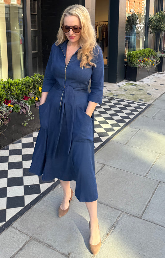Back in Stock - BEST SELLER - The 'Zip Pocket' Dress in Navy Polka Dot
