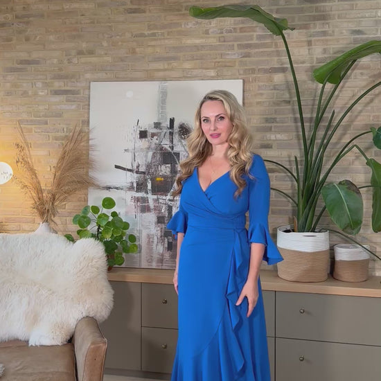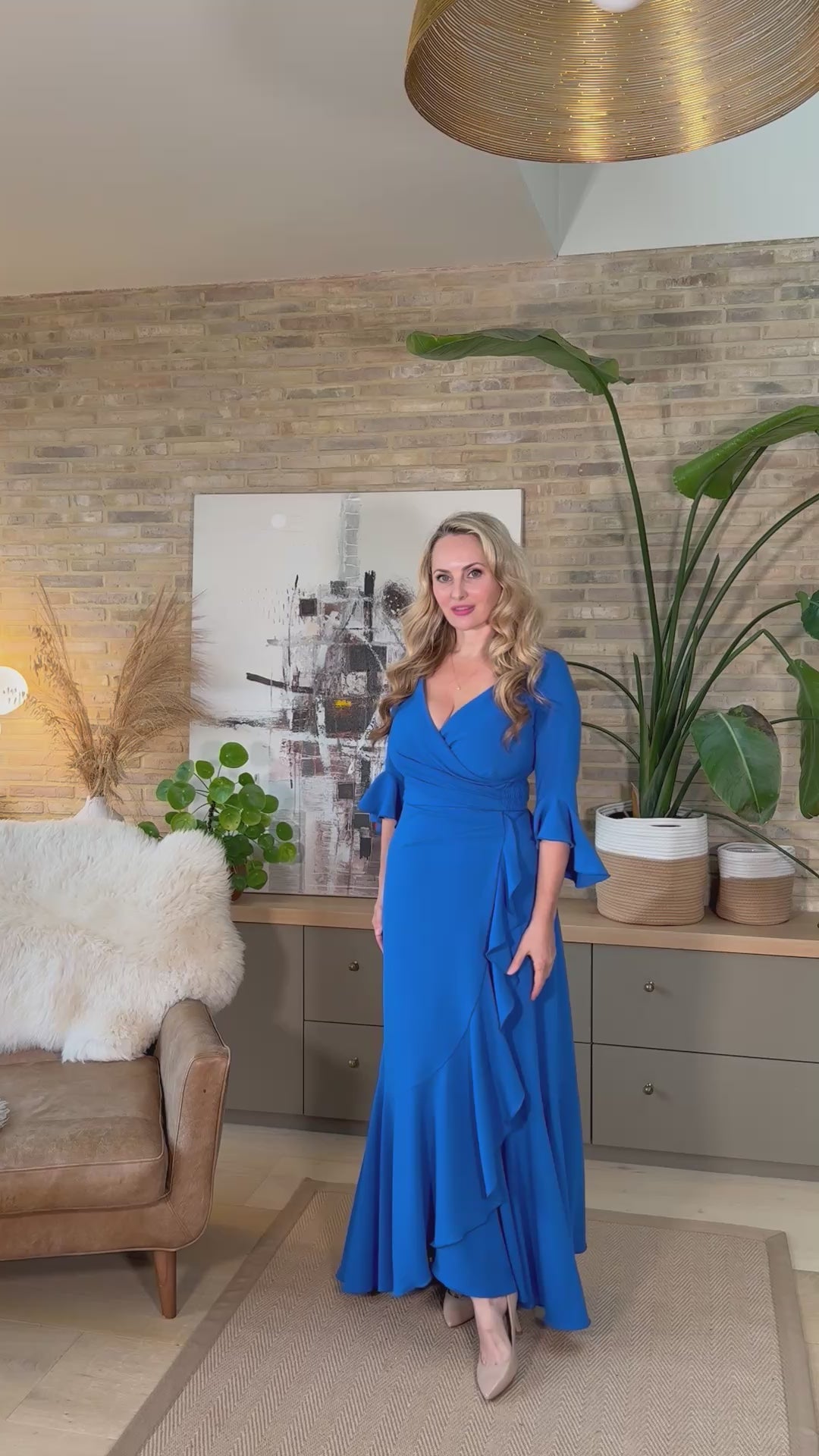 NEW IN - 'Stevie' Luxe Ruffle Dress in Bright Blue