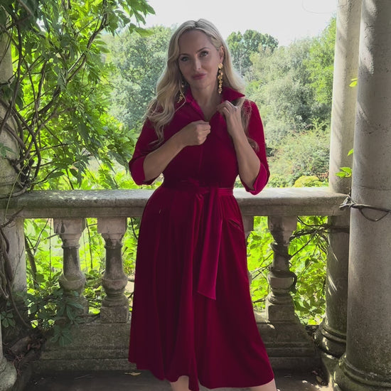 PREORDER NOW - The 'Zip Pocket' Velvet Dress in Red - Despatches w/c 13th October